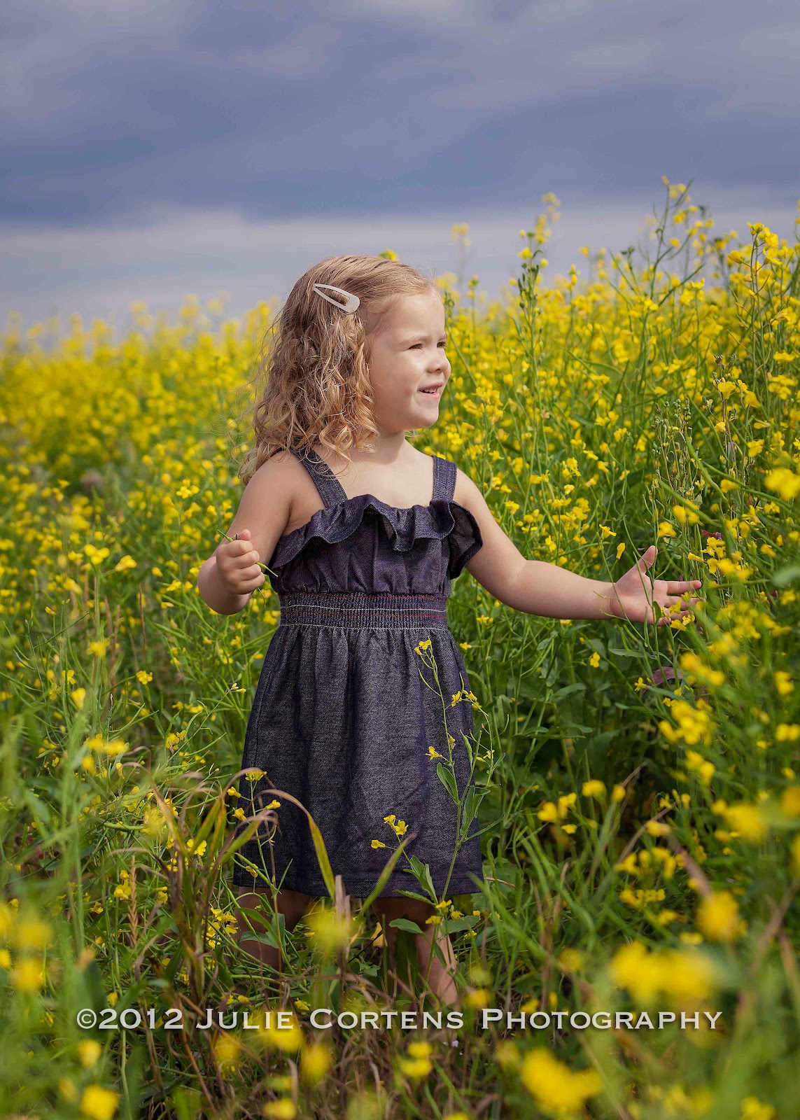 One of the many things I love about being a photographer is getting to know so many interesting people. Today I was able to ride out into a farmers field and not only get my shot of Canola, but photograph sweet little Aleina, who turns 3 tomorrow, and her daddy who is a farmer. I learned all about canola, the seeds, when they are harvested and how they get the oil out of the tiny seeds. Aleina took quite a shining to me - I even got a few kisses. Made my day! :)