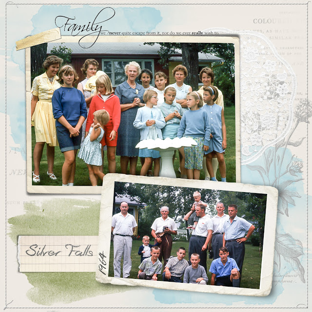 This page is from a family reunion in 1964. I am always amazed that all the mothers in the photo have skinny waists and are wearing dresses and pearls. We are at the lake here.